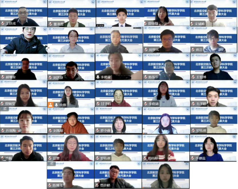 12月23日,数学科学学院第三届研究生代表大会于线上召开。学院团委书记王铁成、2022级研究生辅导员董承霖,校研究生会代表冯长春,以及数学科学学院硕博各年级30位研究生代表参加本次会议,会议由研究生代表余廖主持。