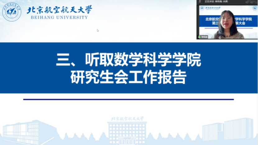 数学科学学院研究生会办公室负责人曾筱薇作工作报告